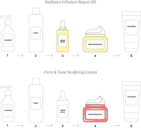 This daily skincare and wellness regimen is perfect to kickstart your journey to radiance from within. Experience the transformation that is possible with positive daily habits. Whether you’re at the start of your skincare journey, or your skin is in need of a radiance reboot, or you are in need of a regular wellness regimen — this is your solution.